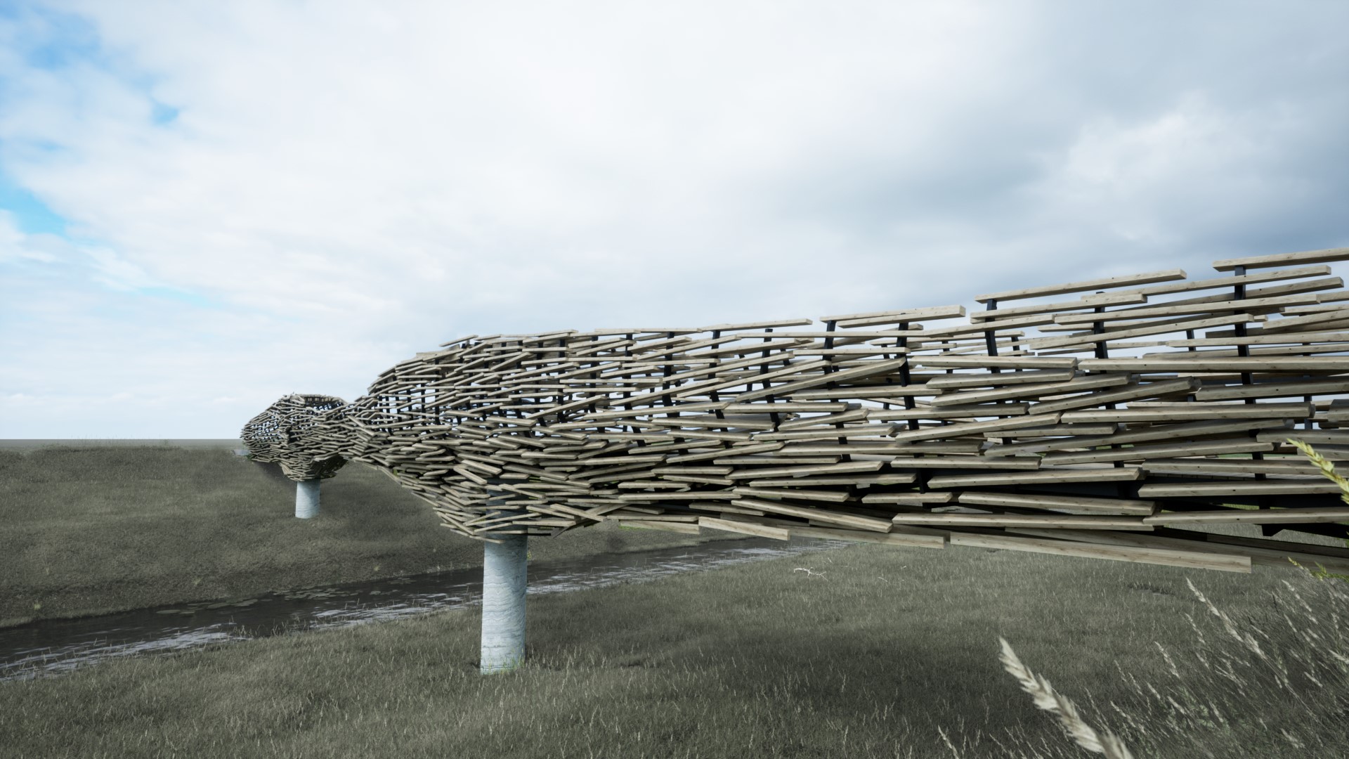 Koncepcija mosta proizlazi iz želje za stvaranjem kvalitetne arhitekture što podrazumijeva i postavku građevine prilagođenu lokaciji, duhu prostora i potrebama korisnika. S obzirom na okruženje, netaknutu prirodu rijeke Česme i njezinu bioraznolikost, glavni arhitektonski koncept dolazi upravo iz prirode tj. iz motiva dabrovih nastambi, koje su karakteristične za to područje.